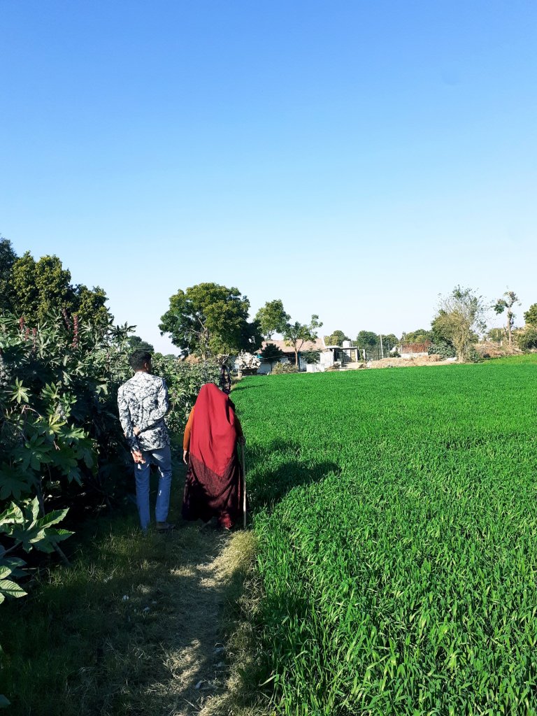 An old woman in the photograph who is not even able to walk . She took help of his grandson walk in the farm to see cultivation . She wants to see once again that giant trees which she had planted when she was young and those trees were very little when they have been planted but now they have become so giant.When she goes there and see the crops and a modern cultivation of this era she thought how fast this time flies…and told his grandson that they used to play games and sing songs …eat healthy foods of their own handcraft. That 63 years of his life all that memorable moments was going in his mind in just few seconds some of them was good and some of bad .but now it all changed as time passed…dropping some unseen tears which nobody would ever know until she tell them…she rapidly got back to home before memories hit her very badly